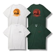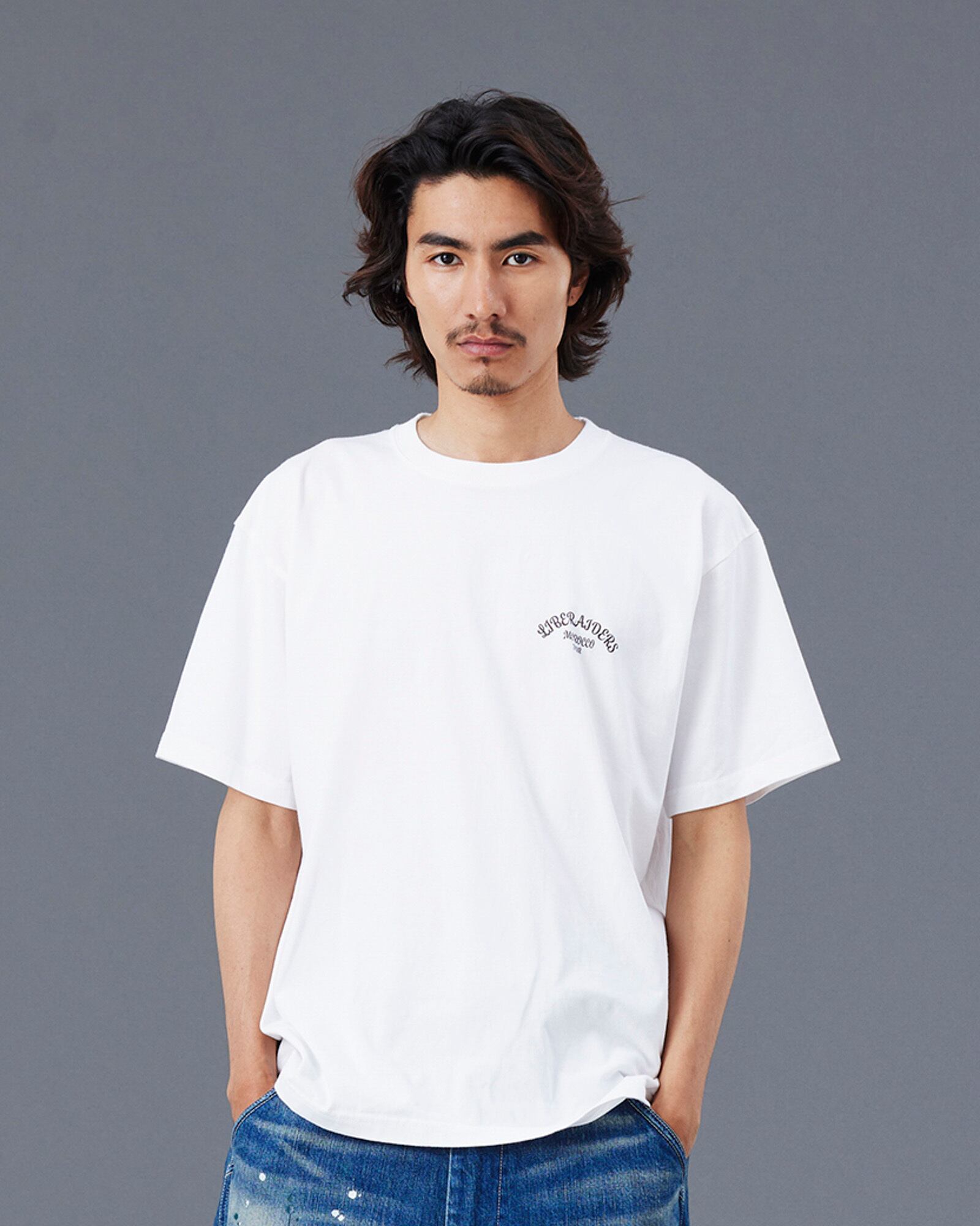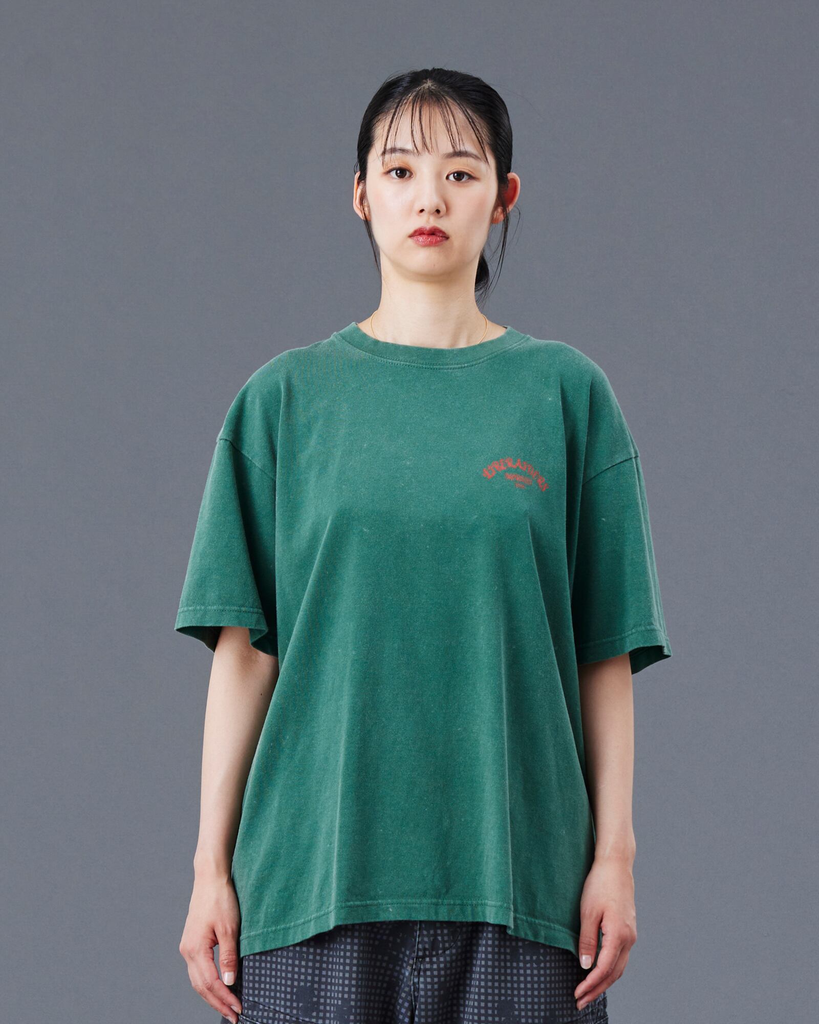 Tシャツには全体を起毛させ、色を退色させるパウダーフロスト加工を施しており、肌触りが良くヴィンテージライクな仕上がりになっています。