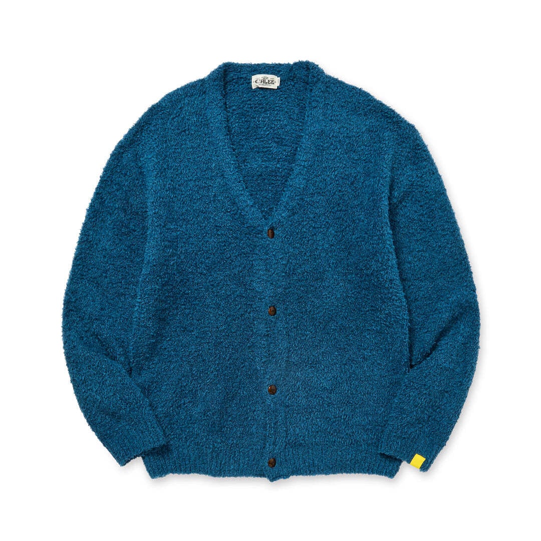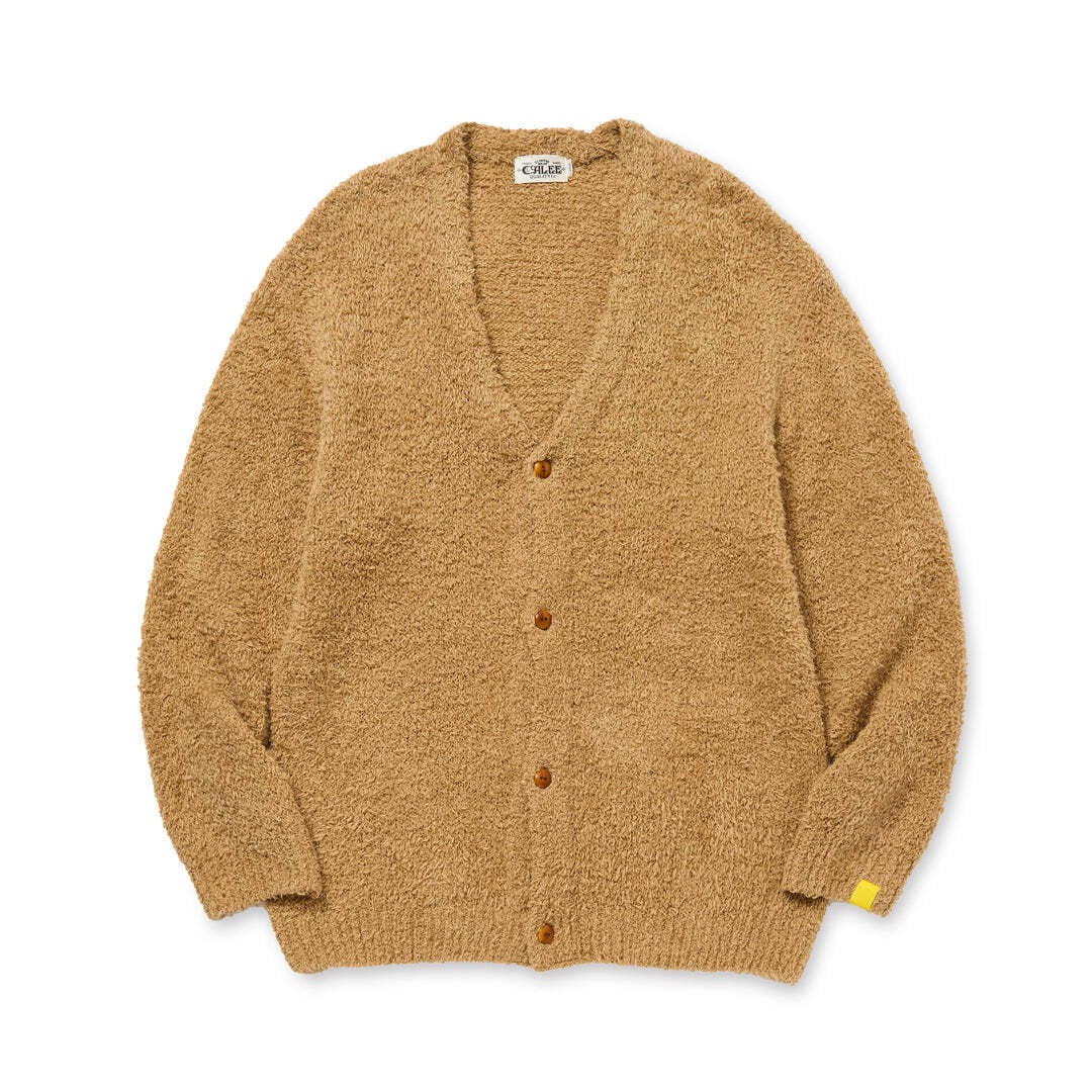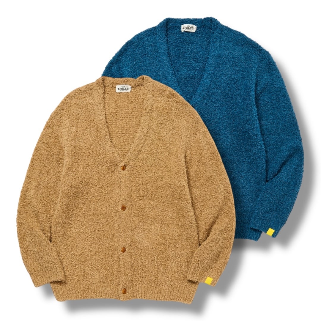 EYYAコットンフリースカーディガン。コットンナイロンの糸を5ゲージで編み立て、フリースの素材感、シャギーの様な起毛感を表現。柔らかな肌触りと軽さが特徴。全ての工程を日本で行う『JAPAN KNIT』。