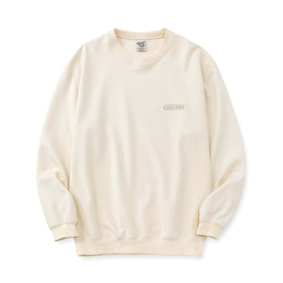クルーネックブークレーカットソー。表面にブークレー糸を使用したダンボール生地を採用。ストレッチ性とハリ感があるのが特徴。フロント左胸に刺繍が入る。
