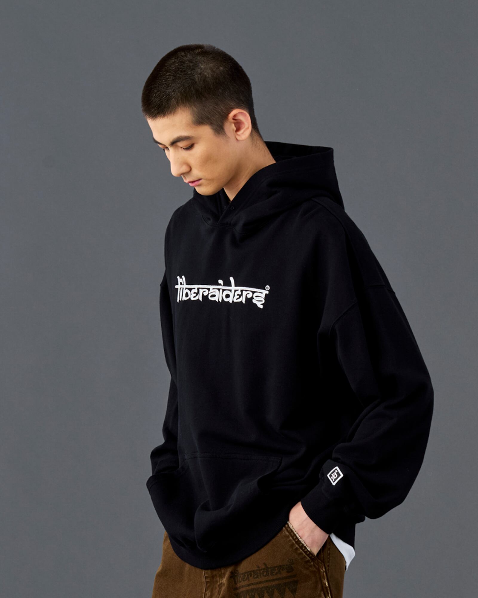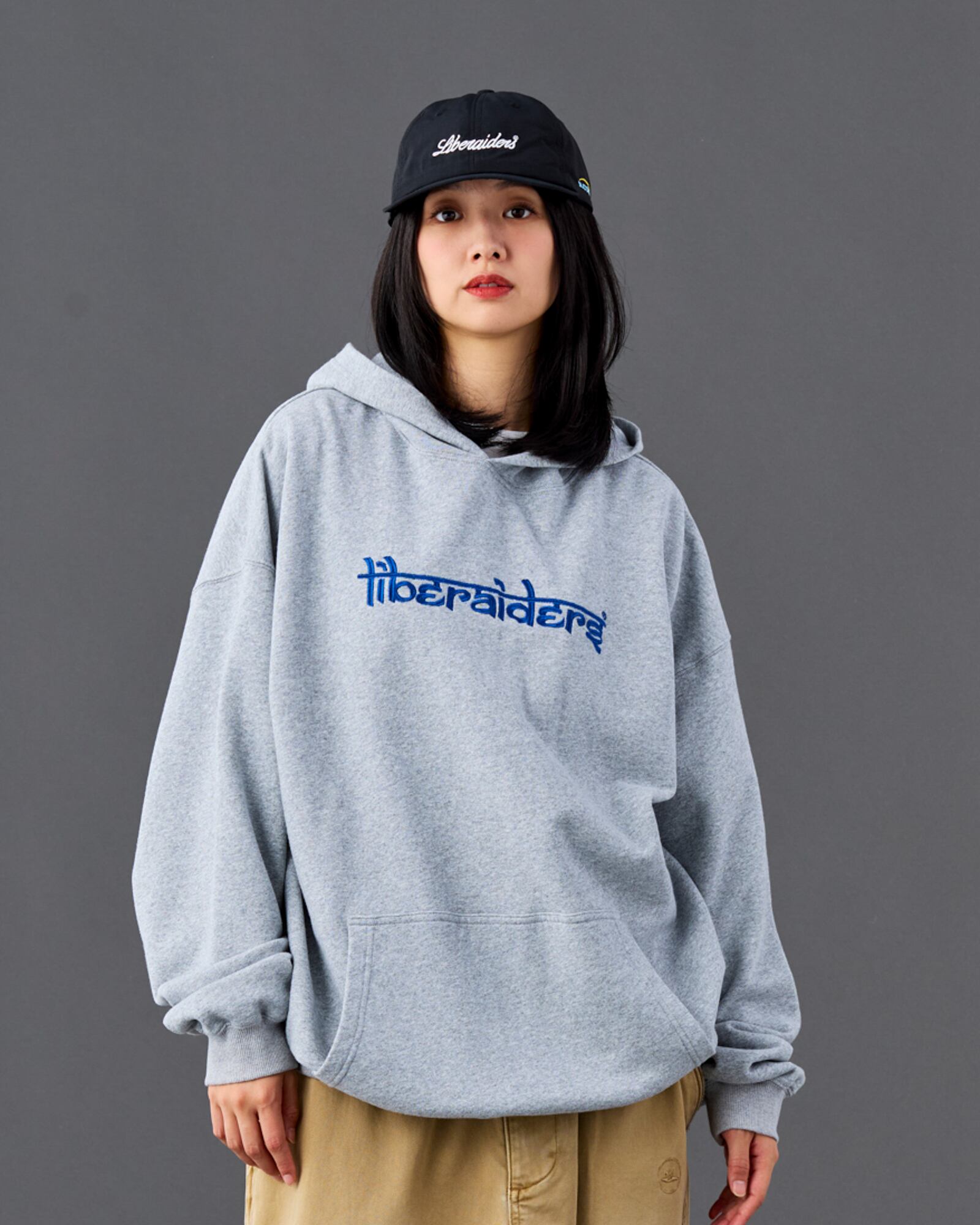 胸にはサンスクリット語調のロゴが刺繍で入ります。 背面にはOGロゴとDestination Unknownが刺繍で入ります。左袖口には折り鶴ワッペンが付きます。