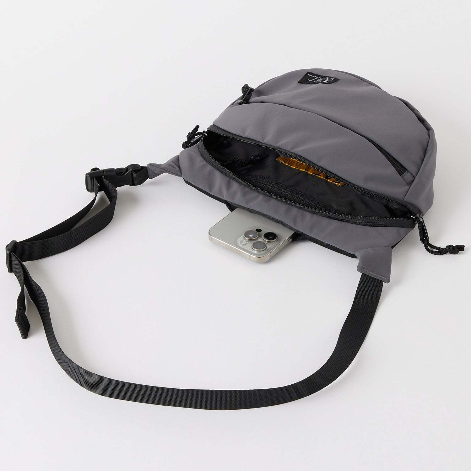 しなやかな3レイヤーナイロンを使用した絶妙なサイズ感のファニーパック。メインポケットにウォレット・鍵・イヤホンなどを収納し、身軽に出かけるのに最適なアイテム。背面にクッション性の高いメッシュ素材を使用し、センターにはiPhoneを素早く取り出せるスリーブポケットを備えるなど機能性も魅力。フロントのブランドネームが程よく主張してくれる。