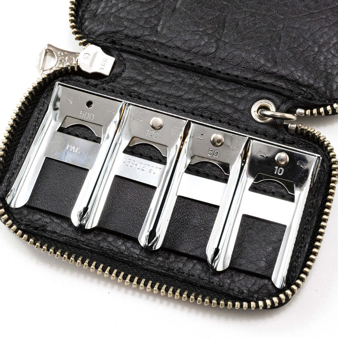 レザーコインケース。イタリア、トスカーナ地方にて、 職人の手により1枚1枚丁寧に手鞣し、手染めされたイタリアを代表する最高級ハンドメイドレザー、アリゾナレザーを採用。革本来のナチュラルな風合いとシボが特徴。ピラミッド型スタッズを施した。