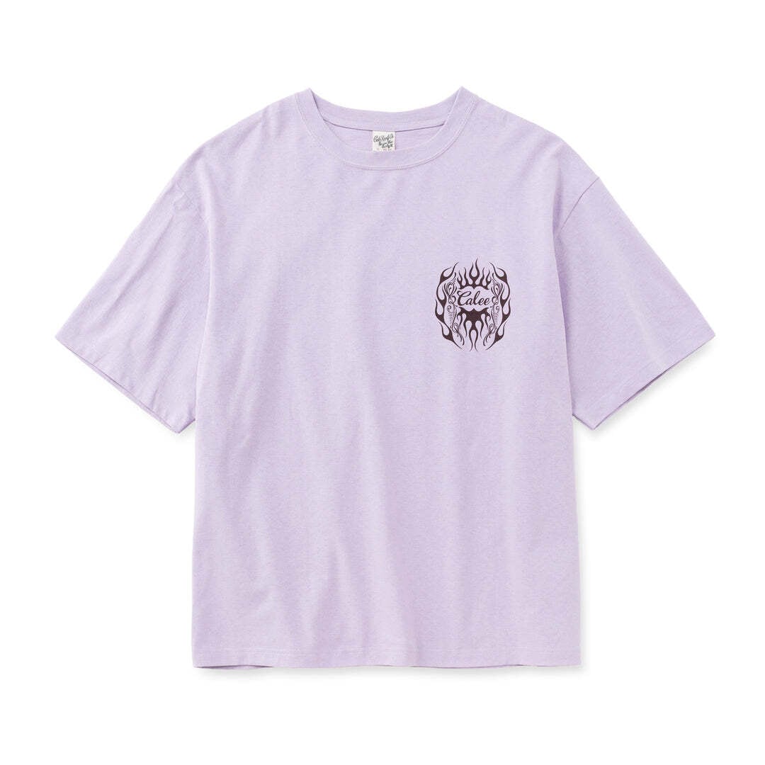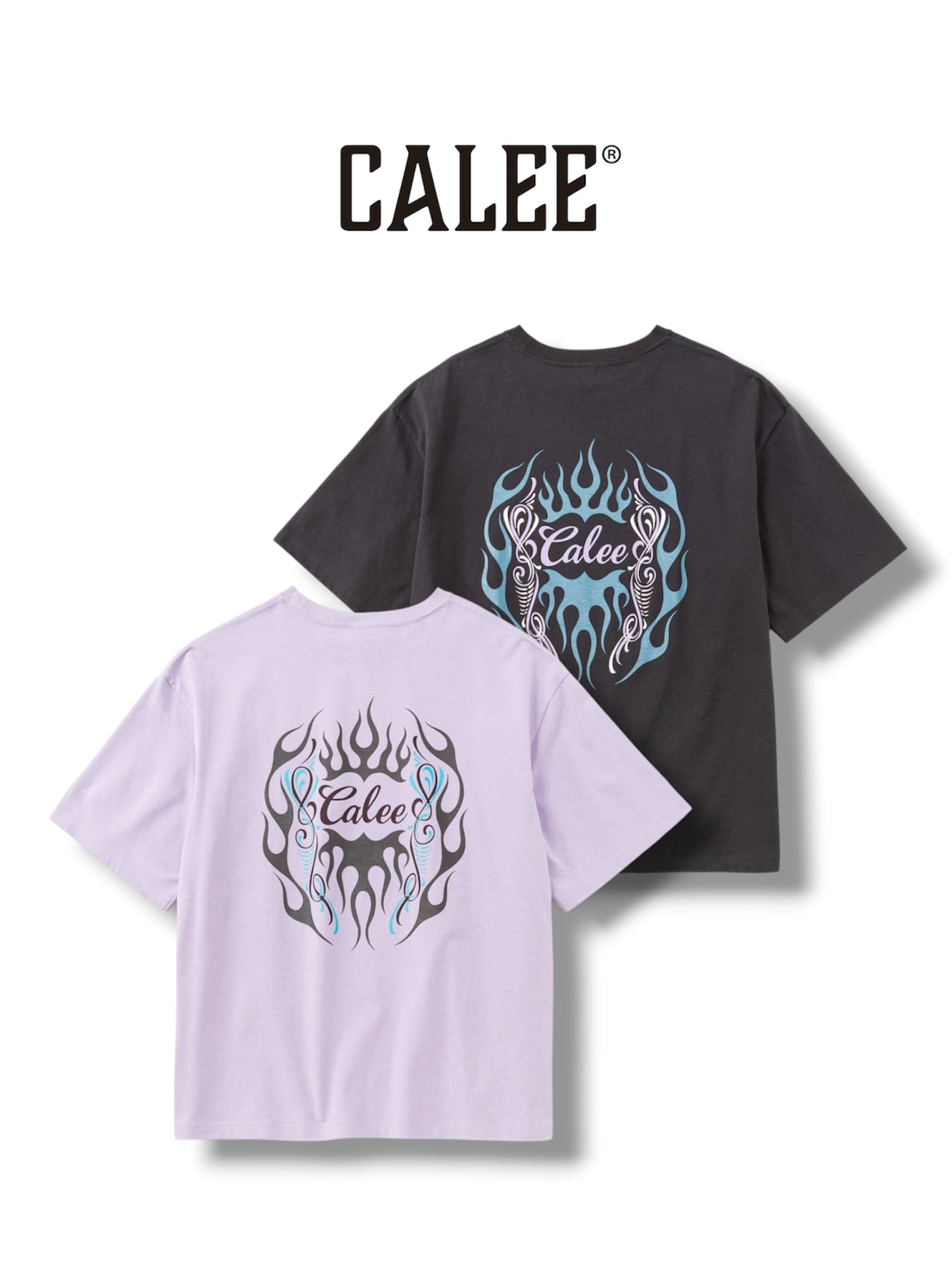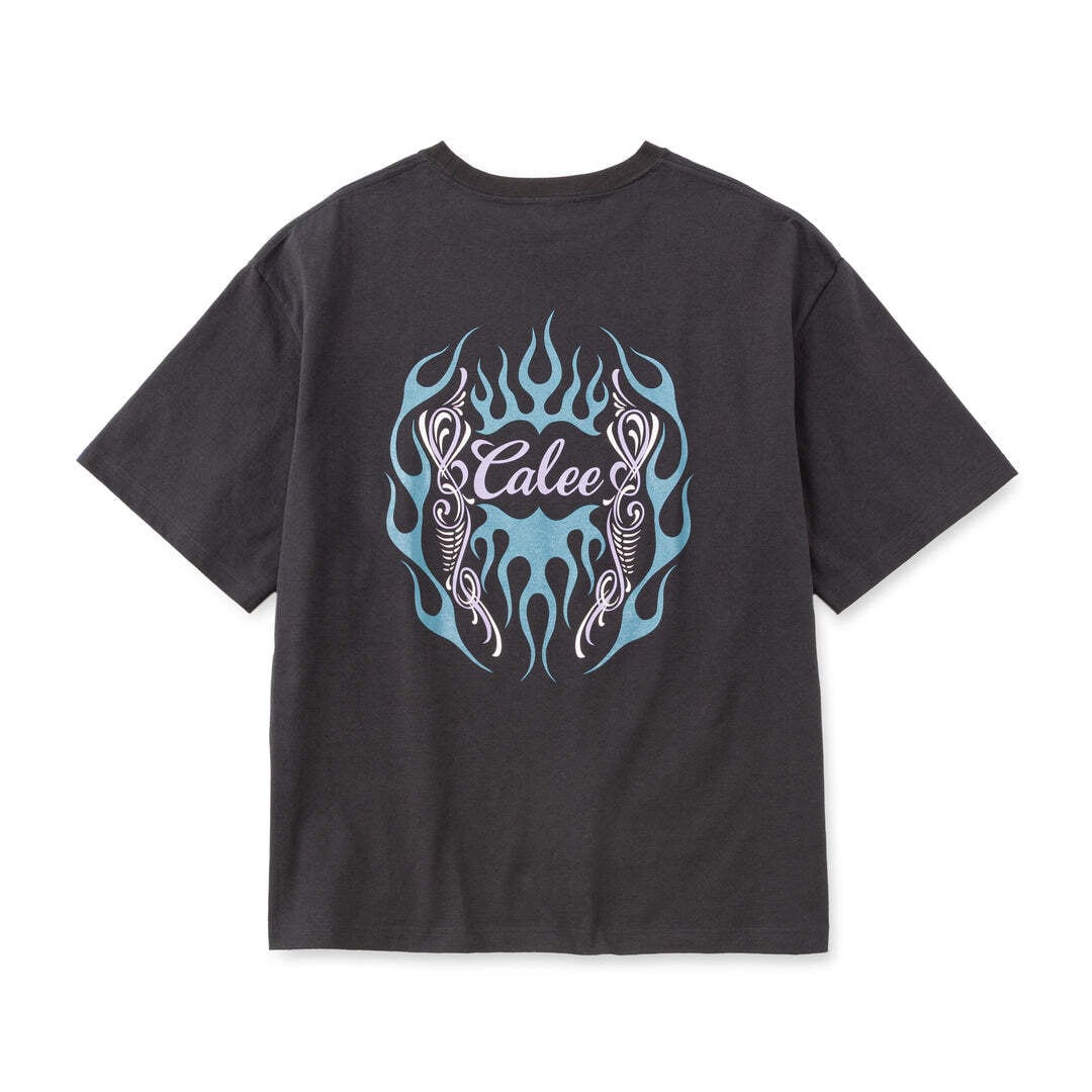 CALEE : VINTAGE TYPE FLAME LOGO PINSTRIPING S/ S TEE <NATURALLY PAINT DESIGN>