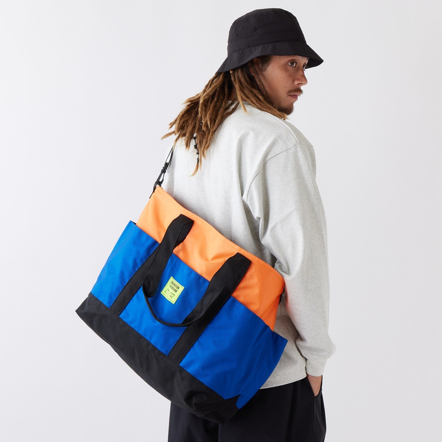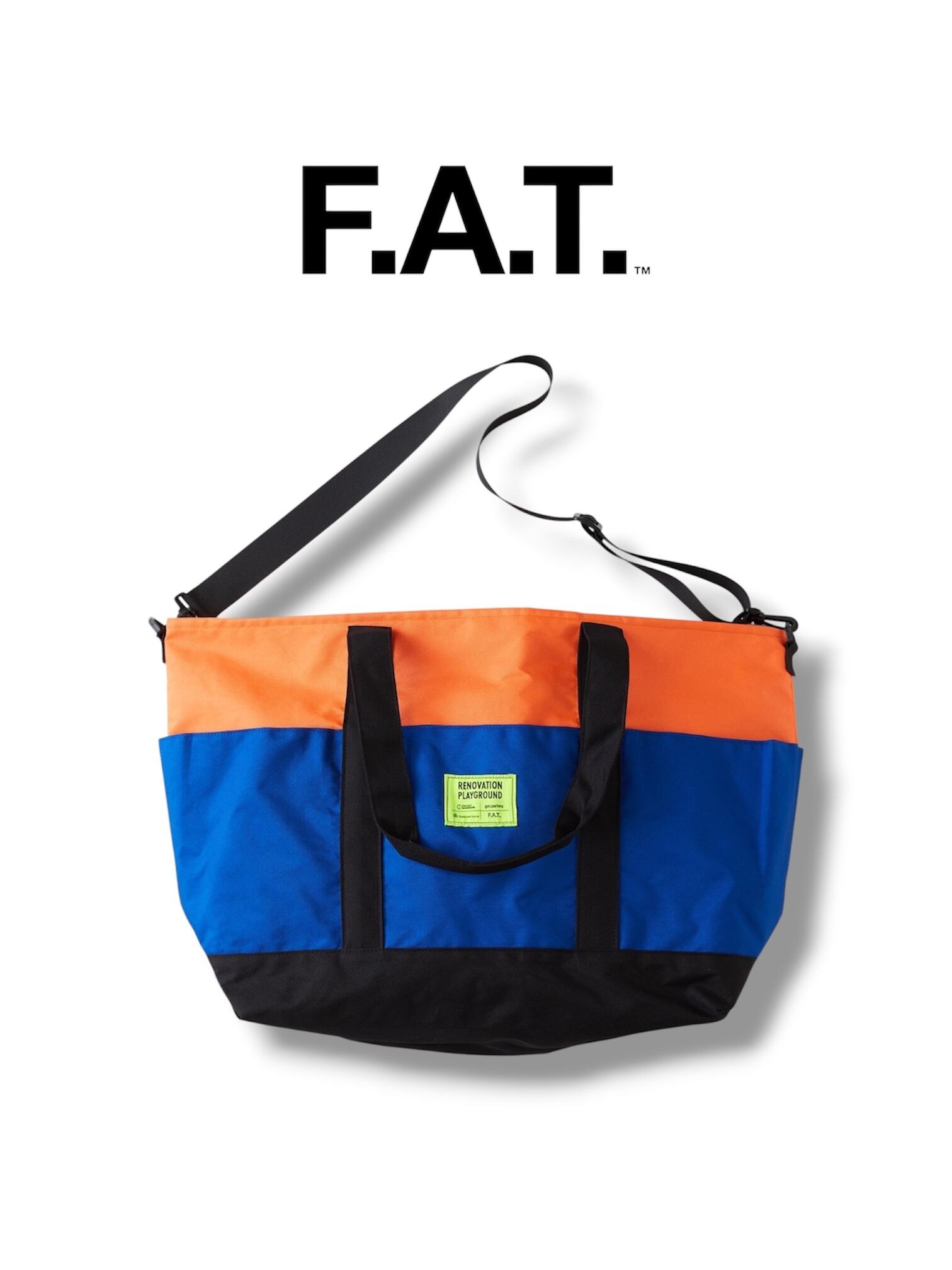 PROJECT BACKBOARD×go parkey×Sb×F.A.T.のクアッドコラボによるトートバッグ。"PROJECT BACKBOARD"(アメリカ)と"go parkey"(日本)はお互いに密接な関係性を持ち、公園やバスケットコートをキャンバスにしたアートコート・リノベーションを行う。そんな彼らをイメージしたデイリーユースギア。アウター、スウェット、PC、ペットボトルなど、何でも収納できる大容量と、使い勝手の良い充実したサイドポケットはアクティブシーンでも活躍してくれる。センターポケットのネオンネームが程よく主張してくれる。